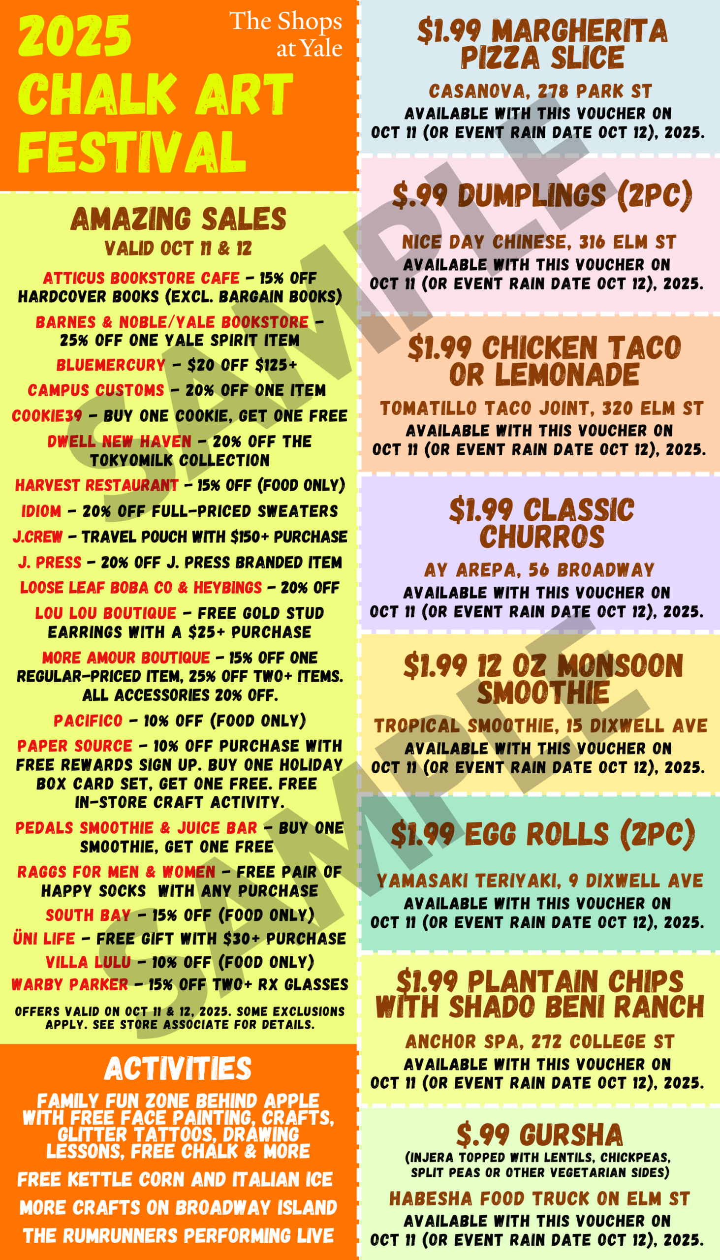 ♥ Lunch specials, $.99 and $1.99 menu items, and exclusive store sales with sales sheets available at The Shops at Yale tables!