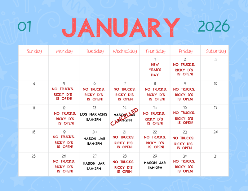 Each day will feature a different food truck, offering options such as authentic Mexican from Los Mariachis, burgers and fries from Fryborg, and soups and chicken cutlet sandwiches from Mason Jar.